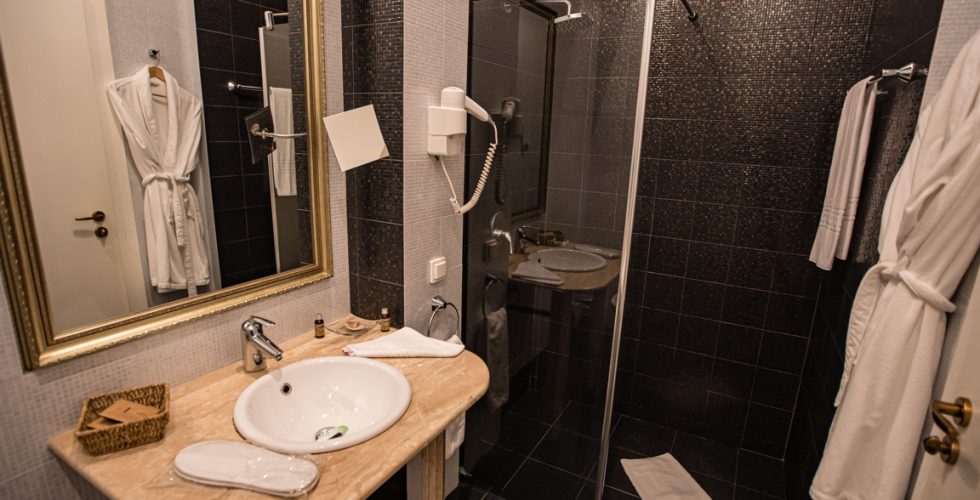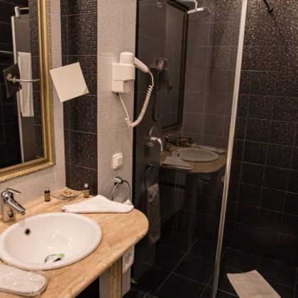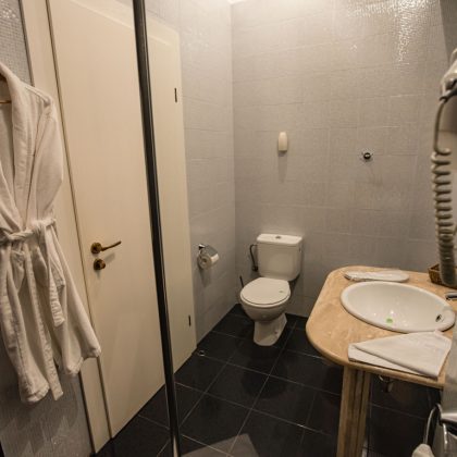 Baia vă răsfață cu o cabină de duș modernă, lavoar, bideu, produse cosmetic , uscător de păr, oglindă pentru machiaj.