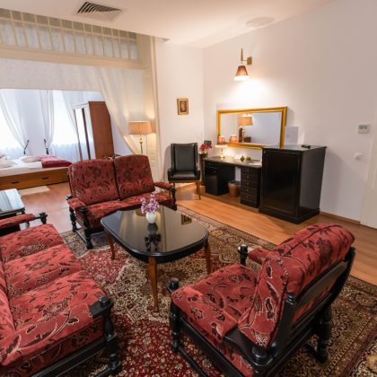 Zona de lucru bine organizată asigură confort și eficiență, fie că aveți nevoie de productivitate sau de momente de relaxare. Una dintre suite dispune de bucătărie, oferind un plus de flexibilitate și autonomie, ideal pentru sejururi prelungite.