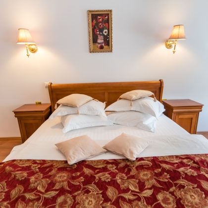 Patul este echipat cu saltea confortabilă, top saltea, saltea de protecție și perne din puf, pentru a vă oferi un somn profund și liniștit.