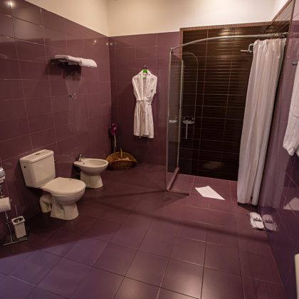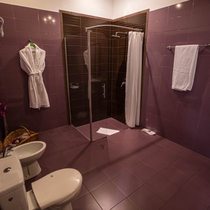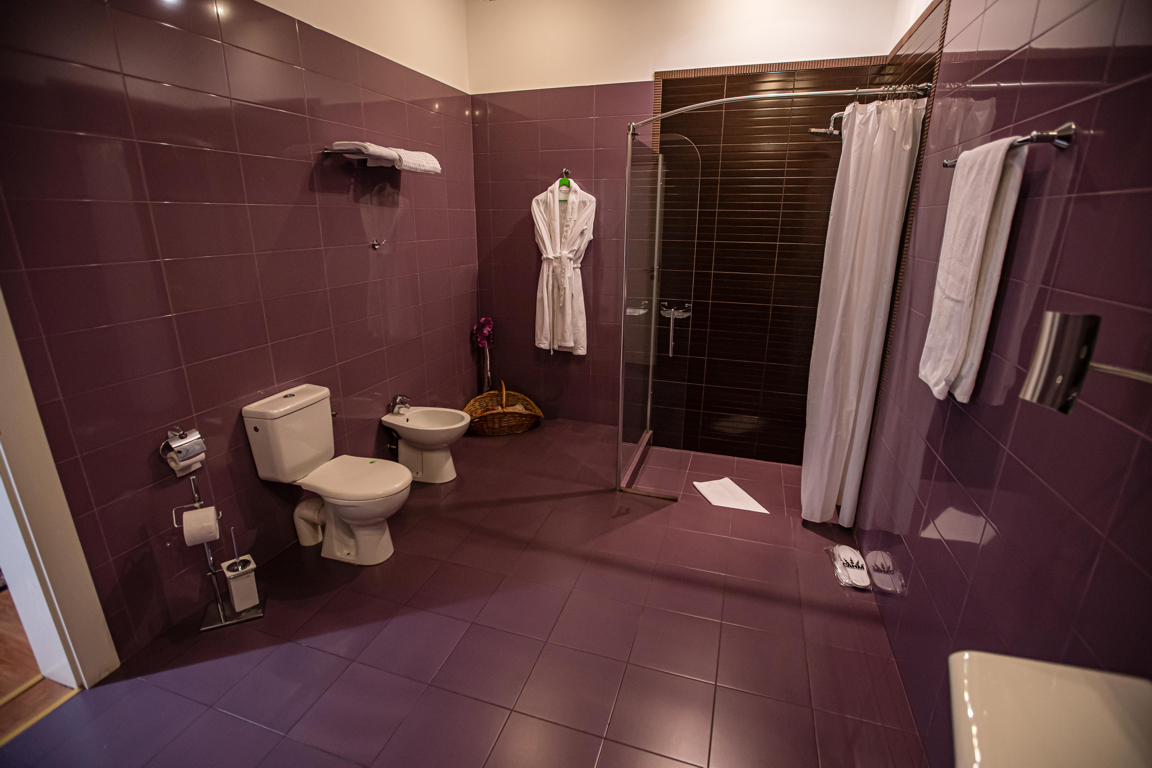Baia modernă completează experiența premium, fiind dotată cu cabină de duș, lavoar, bideu, produse cosmetice, uscător de păr și oglindă pentru machiaj.